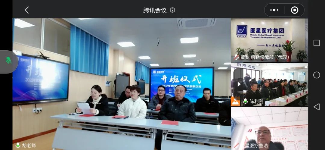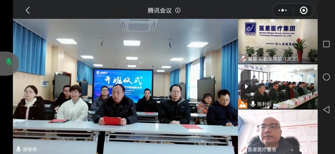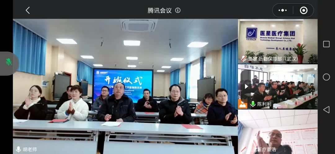 出席本次開班典禮的有湖北中醫(yī)藥高等??茖W(xué)校副校長黃振元、中藥系主任張昌文、學(xué)校教務(wù)處處長袁先雄、中藥系黨總支書記孫潔、中藥系副主任王紅、中藥系學(xué)生科科長朱俊、中藥系醫(yī)療器械教研室主任胡希俅、中藥系教師吳昊、中藥系教師管智慧;醫(yī)星集團董事長兼醫(yī)星學(xué)校校長董浩、審計監(jiān)察中心副總王媛、后勤保障中心副總歐陽劍蘭、人力資源中心副總陳飛、行政管理中心副總陳利利、財務(wù)部經(jīng)理張宙、效率服務(wù)部經(jīng)理吳芬、醫(yī)學(xué)工程中心醫(yī)學(xué)工程部經(jīng)理兼醫(yī)療設(shè)備專業(yè)技術(shù)教學(xué)組李波老師、醫(yī)學(xué)工程中心研發(fā)部副經(jīng)理洪凌云。大會由醫(yī)星集團行政管理中心張文芳主持。