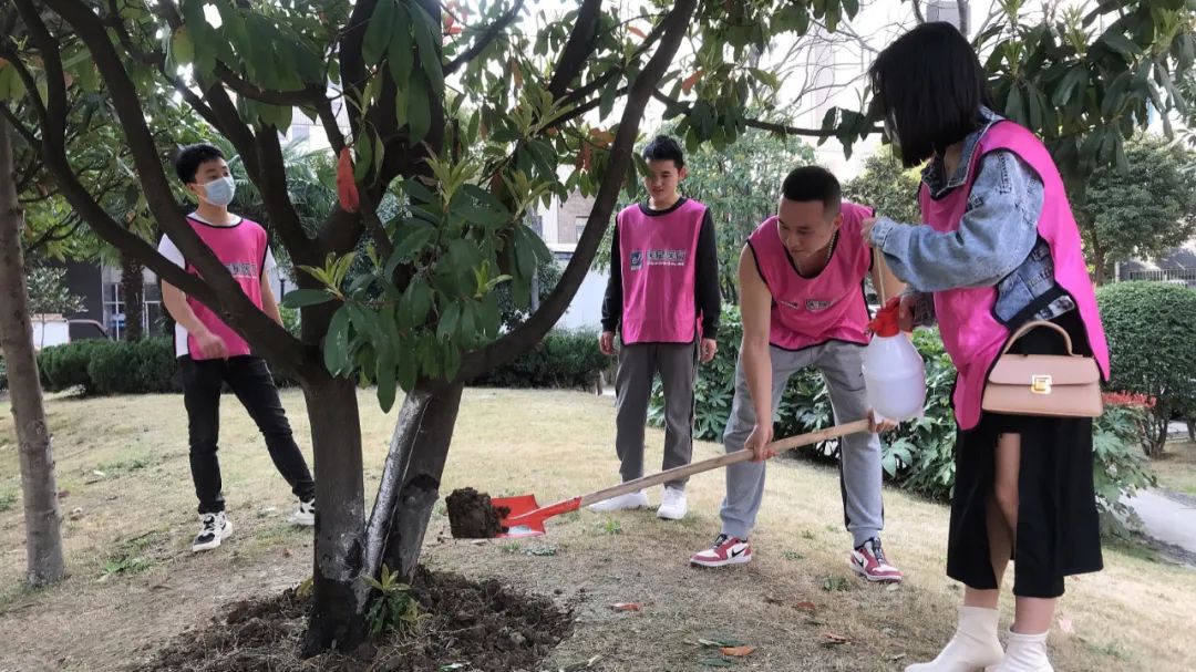 為確保高質(zhì)量、安全完成植物綠化和培土工作,園藝技術(shù)人員在活動(dòng)開始前就操作要領(lǐng)進(jìn)行了示范宣講。學(xué)生們分成四組,分工協(xié)作,挽起袖子或扶樹、或松土、或澆水……現(xiàn)場(chǎng)忙而有序,大家相互配合,干勁十足,談笑風(fēng)生。